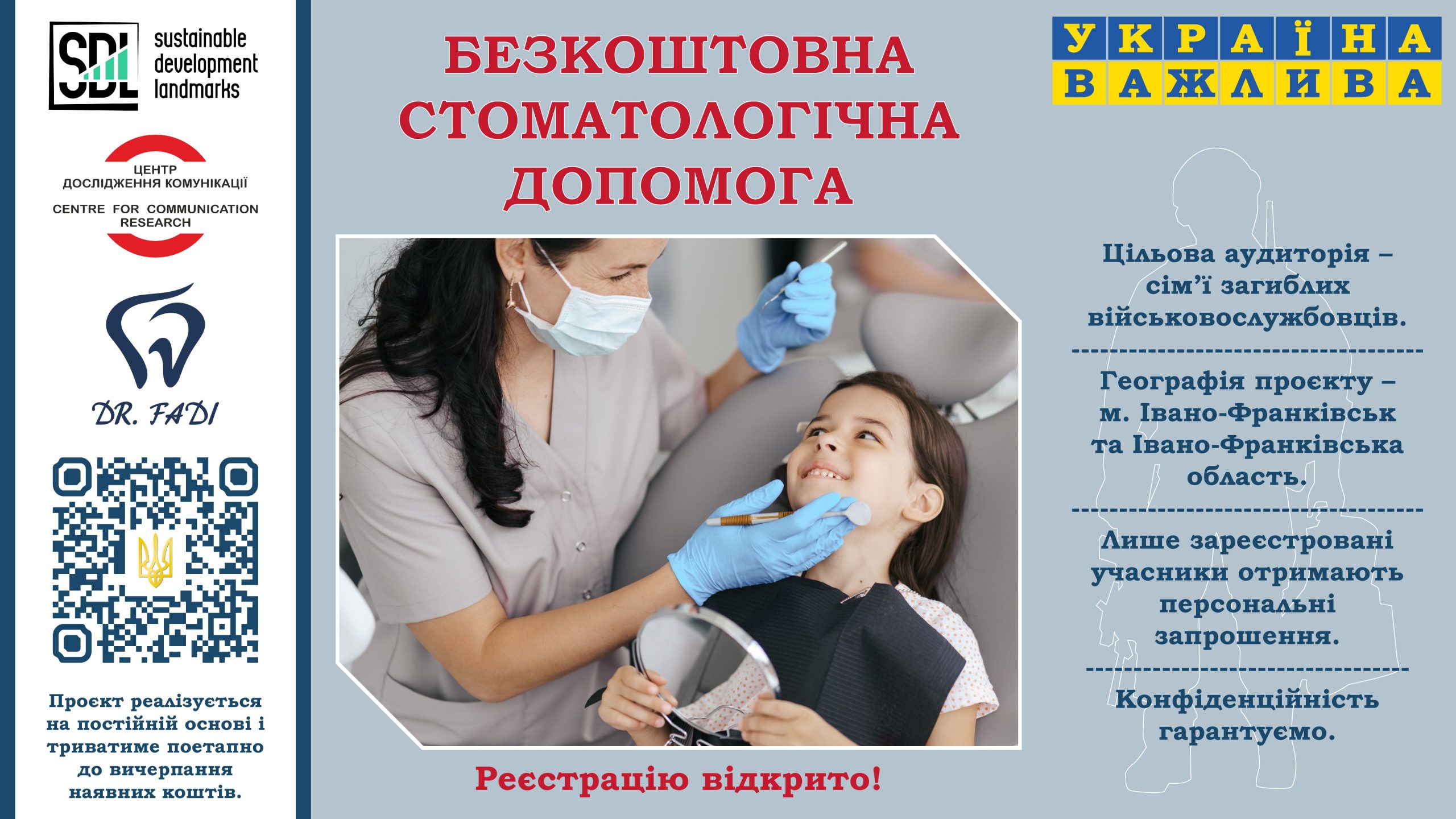 We have started providing dental services in partnership with Dr. Fadi’s dental clinic “New Dent”, Ivano-Frankivsk.